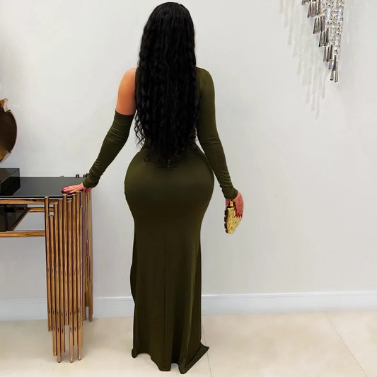 Elite Luxe Cutout Maxi Dress – Olive Green & Gold