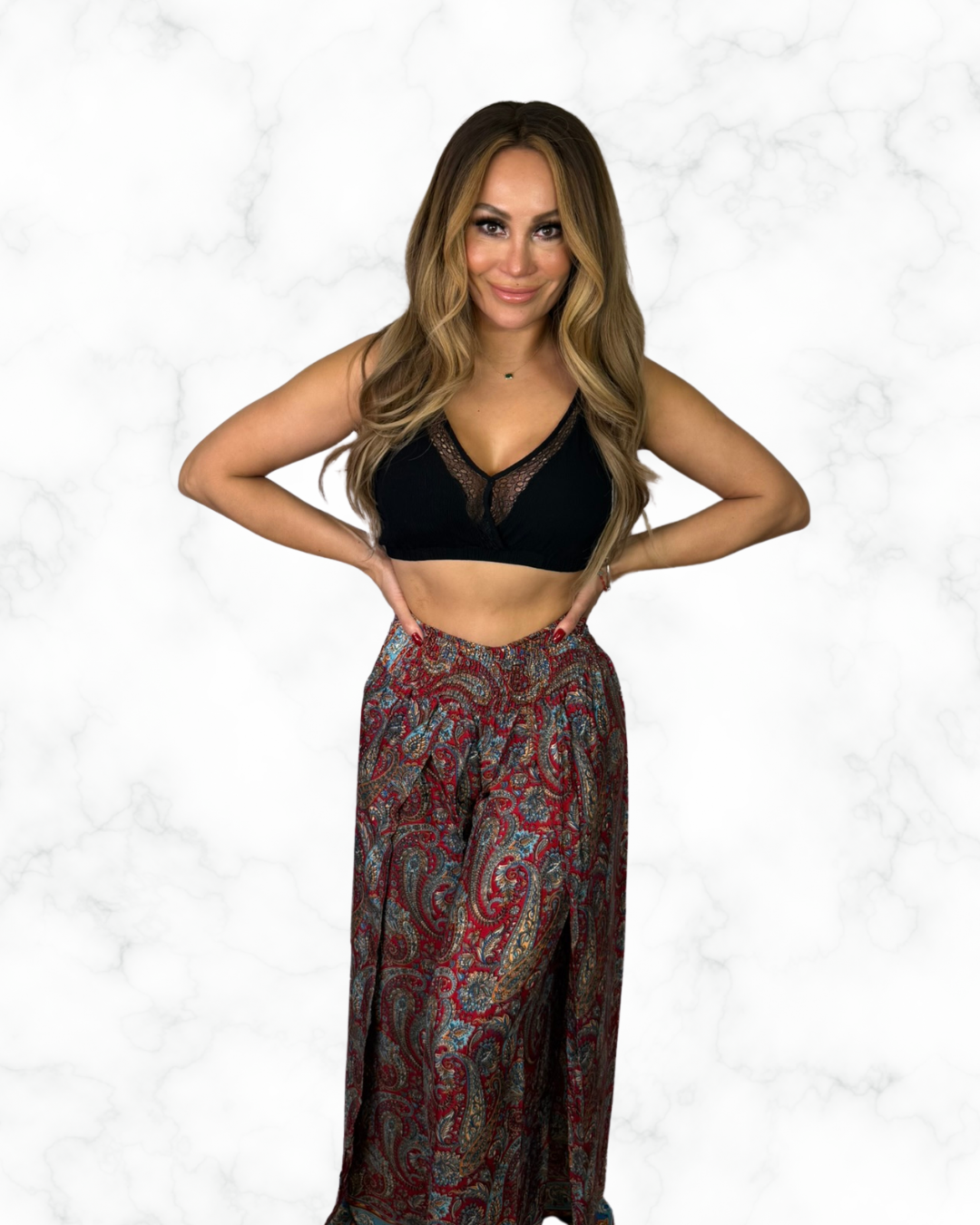 Boho Burgundy Paisley Wide-Leg Palazzo Pants