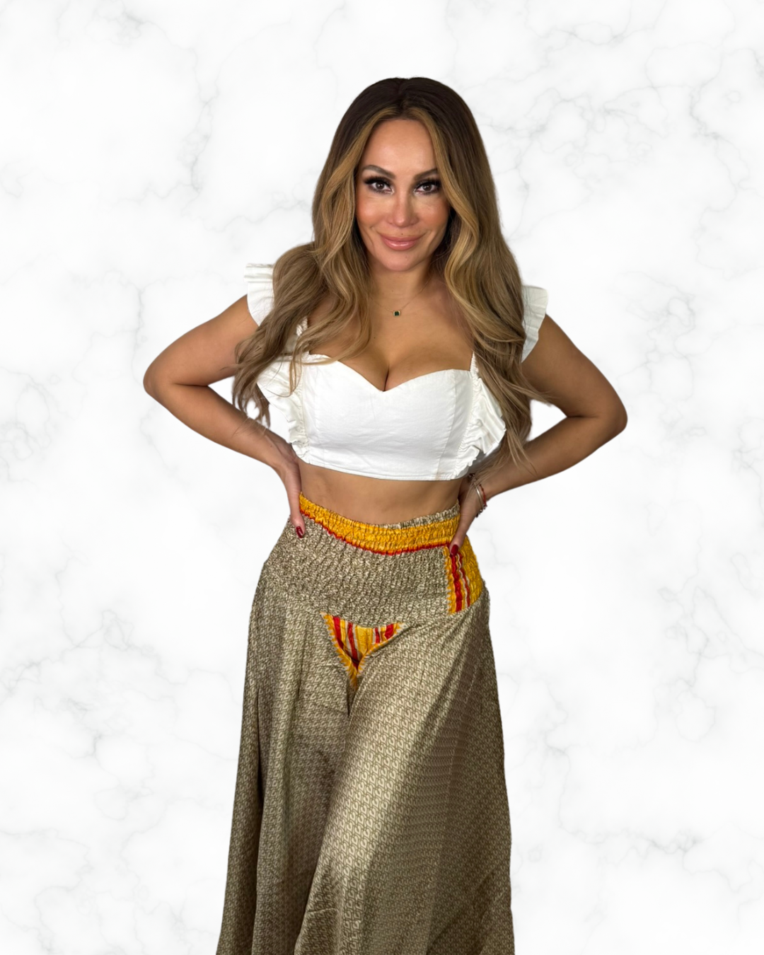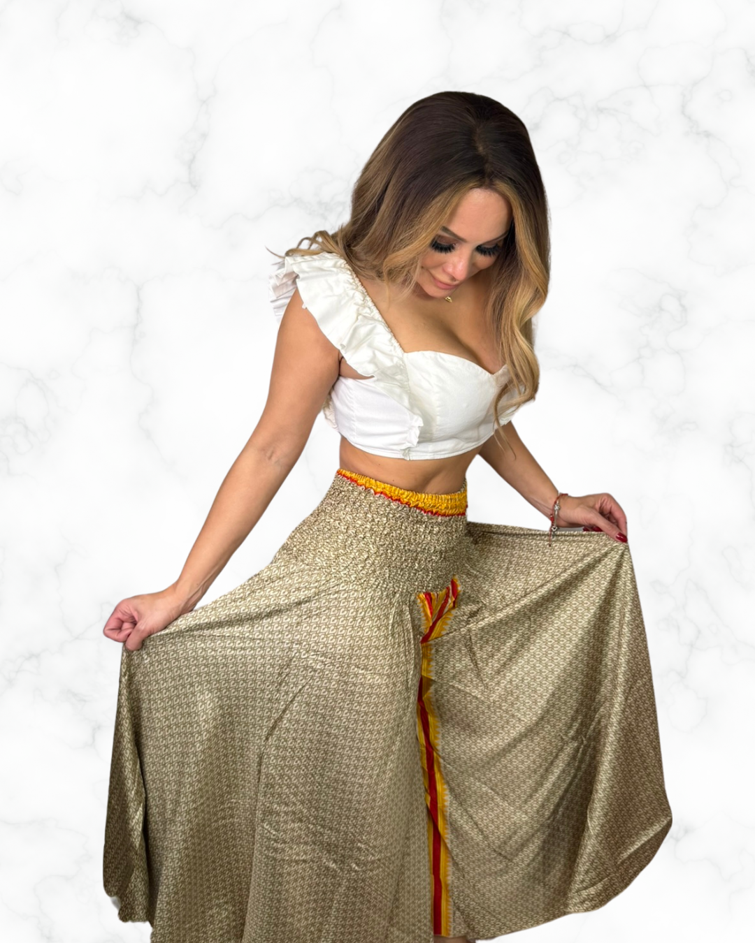Boho Golden Wide-Leg Palazzo Pants