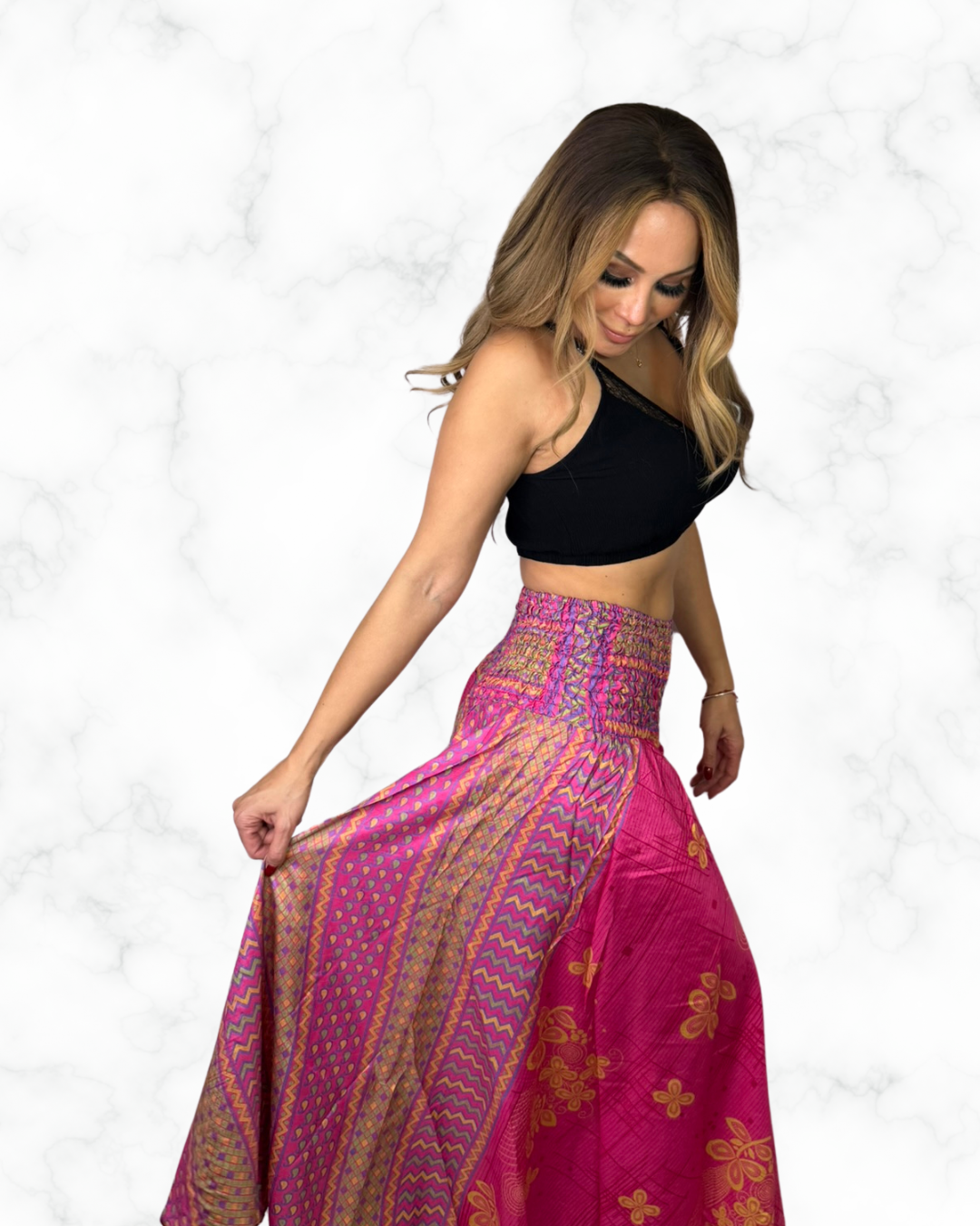 Boho Hot Pink Wide-Leg Palazzo Pants