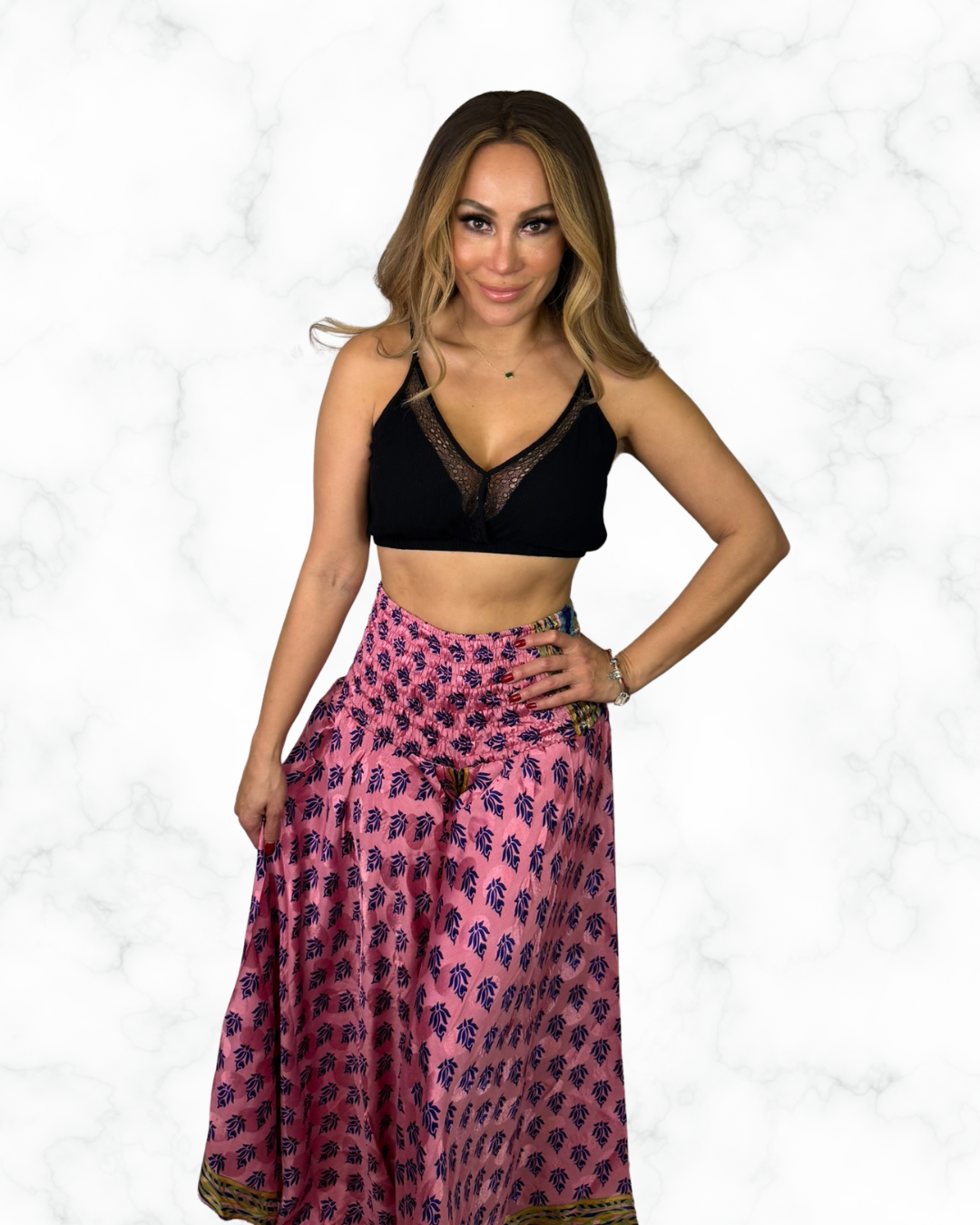 Step into effortless bohemian elegance with these Boho Pink Print Wide-Leg Palazzo Pants, a stylish and comfortable piece perfect for any occasion. These flowy pants feature: