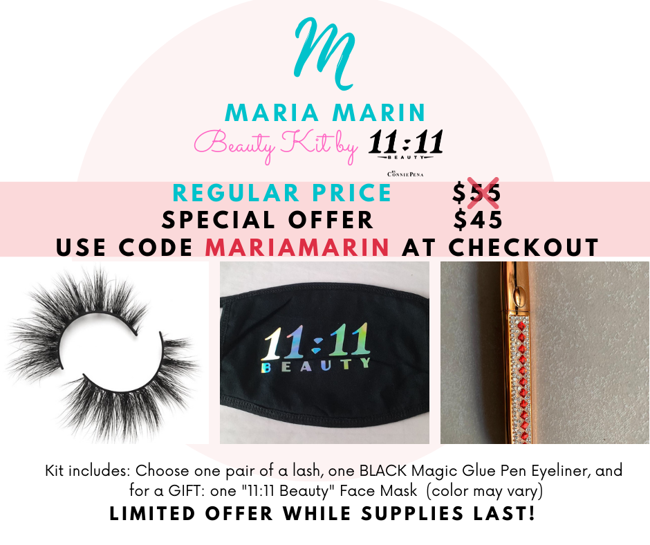 MARIA MARIN Beauty KIT by 11:11 Beauty Shop (3 products) elije tus pestañas! choose your lashes!